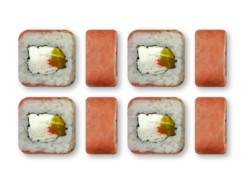 Рис, тунец, мясо краба, сыр сливочный, такуан, нори.